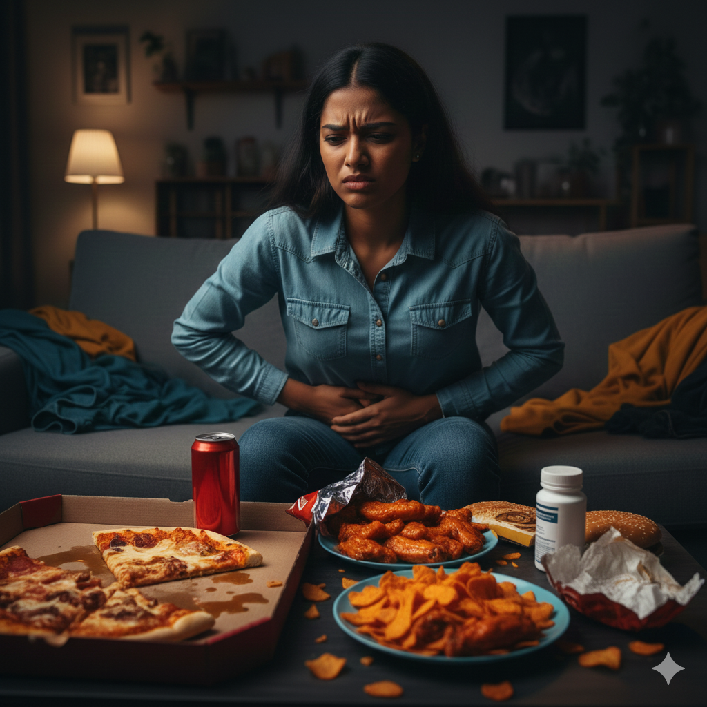 Comidas muy grasosas, picantes o procesadas pueden irritar el estómago y causar acidez o malestar intestinal.